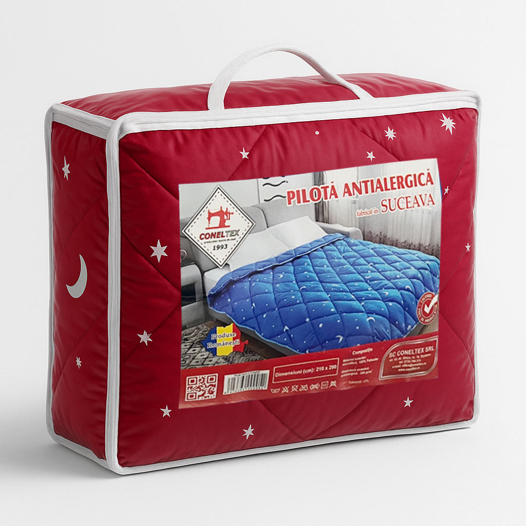 Transformă-ți nopțile de iarnă într-o experiență confortabilă și sănătoasă cu pilota antialergică iarna "Luna și Stele" de la Coneltex. Cu un design deosebit și o umplutură inovativă, această pilota oferă un somn odihnitor.